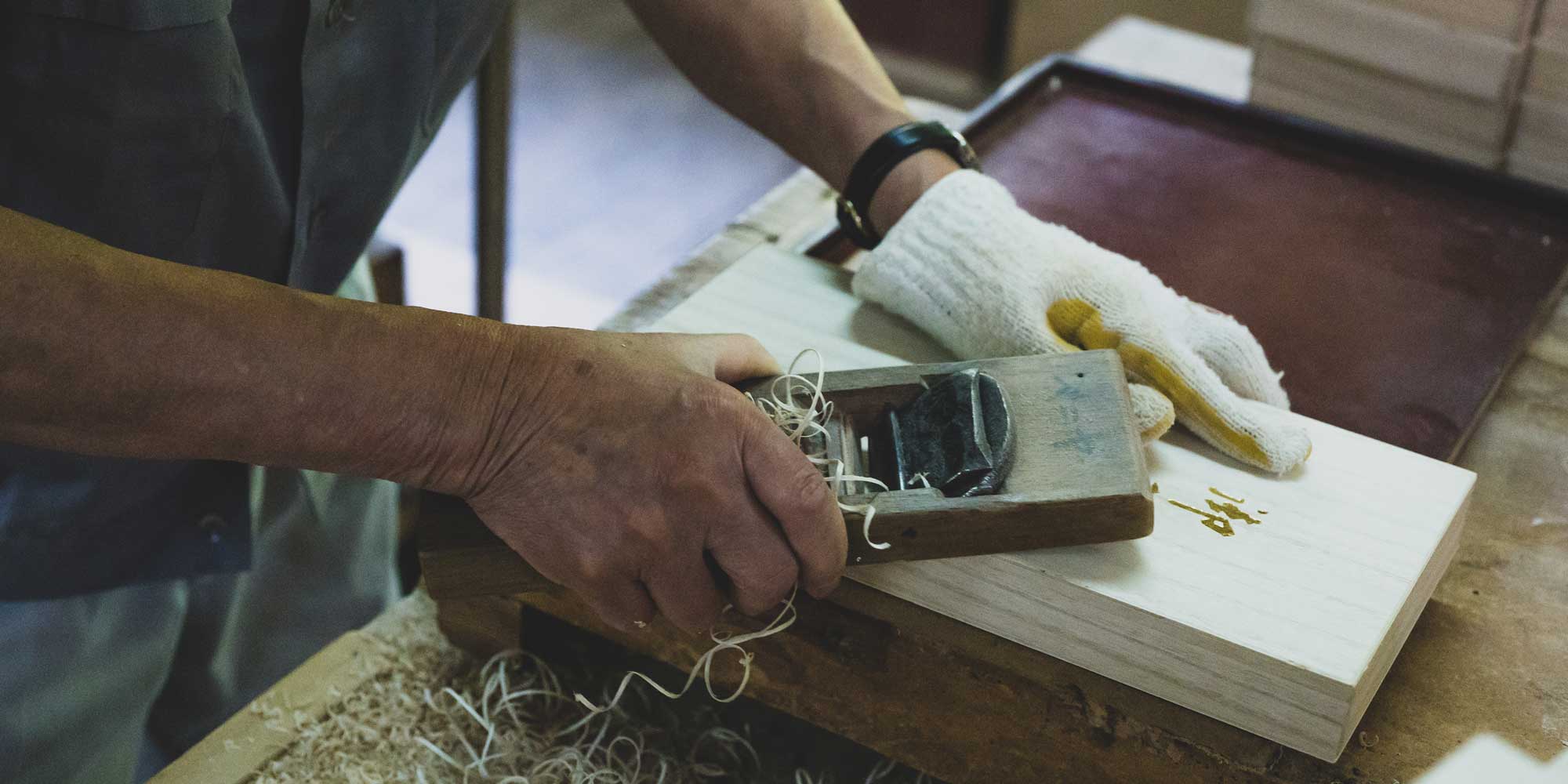 ひとつひとつ手作業で、カンナがけを行なっています。おそらく江戸時代から変わらない光景で、受け継がれた職人の手作業です。カンナの音が気持ちよく鳴り響きます。