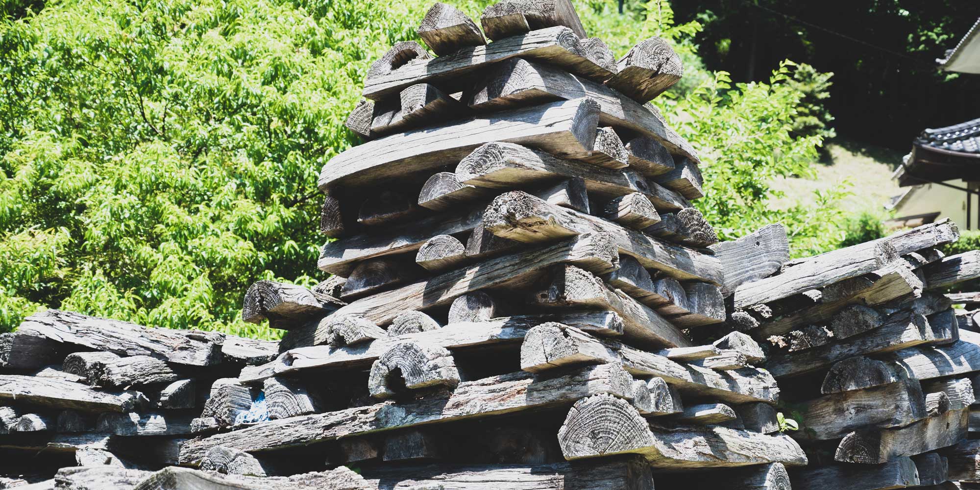 桐作りは素材作りから始まります。まずは、天然素材の桐材を乾燥(写真は自然乾燥)させるところから始まります。これにより、製品にしたときの乾燥や湿気により桐材が動くのを最大限に防ぎます。この工程を行わないと、作った当初は見た目には問題がなくても、日本における夏場の高湿度環境においては、歪みが生じることがあります。