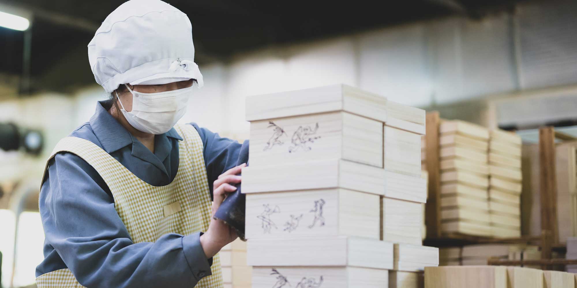 最後に、身と蓋を合わせます。その際に蓋の締まり具合や外観の全体の検査を一つ一つ行います。つっかかる部分があれば、ヤスリやカンナなどで削るなど、最終的な仕上げも行います。