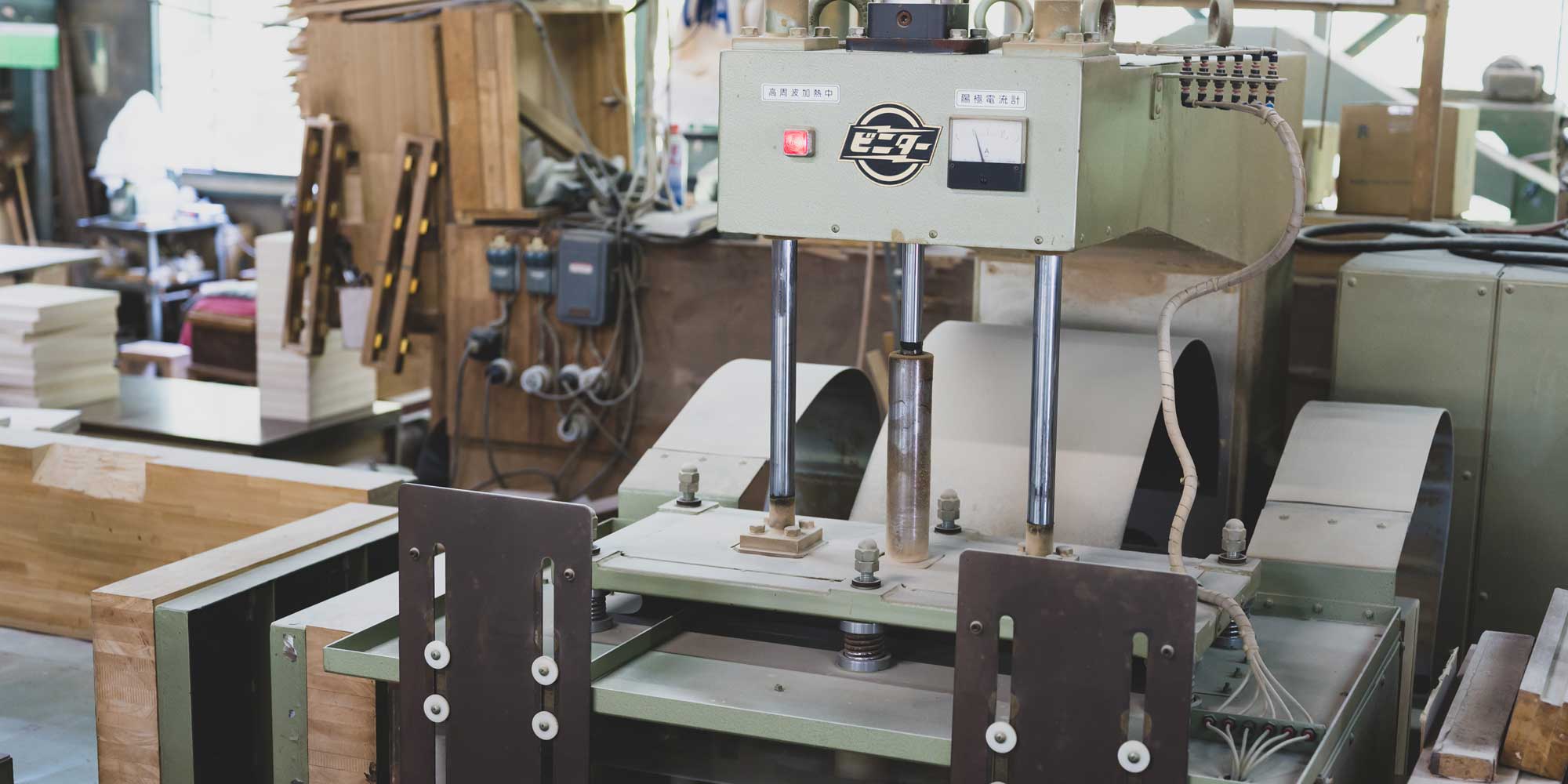 無垢の桐材の複数の板を接合させて一枚の板にするために使用します。通常の手による接着よりも高周波を使用することで高い強度の板を作ることができます。