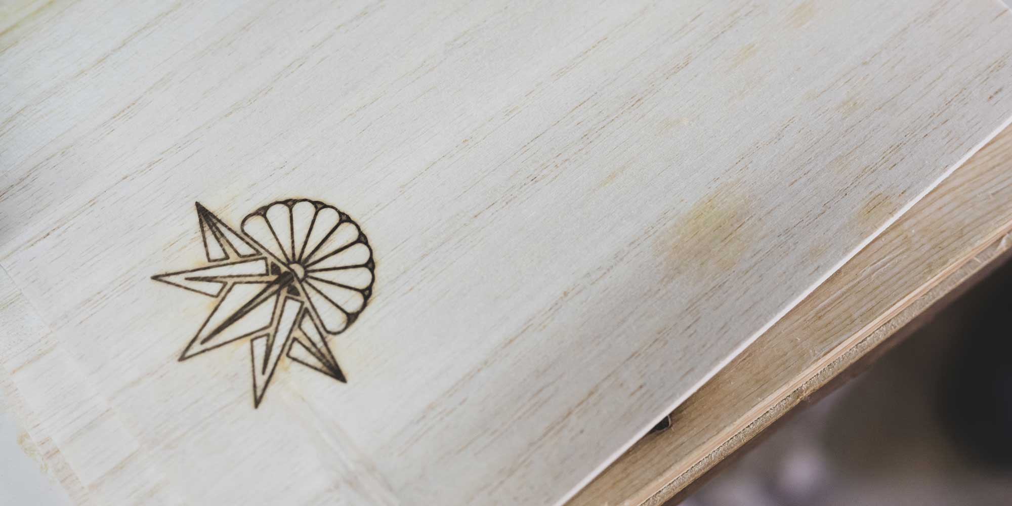 伝統的な技法で、熱した印を桐箱に押し当てて焼き色をつけるものです。こちらも窪みができるのが特徴です。